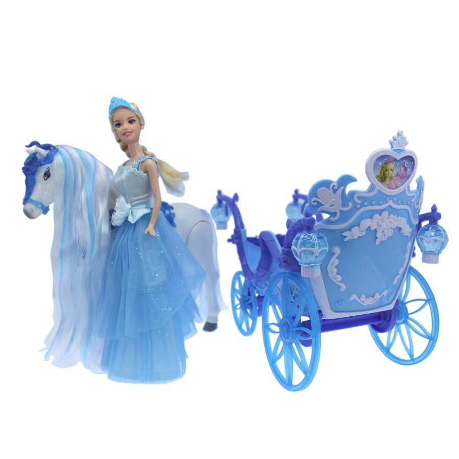 Set jucarie Mappy Printesa cu Trasura si Calut cu functii Plimba-ti printesa favorita cu cea mai frumoasa caleasca, trasa de prietenul ei, calutul magic.Decorata cu accesorii atent selectate, setul de jucarie Mappy Printesa cu Trasura si Calut cu functii pare desprins din cele mai frumoase basme sau desene animate. Un cal alb, elegant, cu o frumoasa coama alba, trage caleasca in care printesa asteapta cuminte sosirea la cel mai frumos bal tinut vreodata in palatul regal. In timpul mersului, calutul scoate sunete aidoma unuia real, tropaind vesel in fata trasurii. Setul jucarie Mappy Printesa cu Trasura si Calut cu functii este cadoul ideal pentru fetitele ce vor sa se joace si se simta ca intr-o lume de basm, impreuna cu papusa lor favorita. Joaca cu papusi permite copiilor sa isi creeze propriile lumi imaginare. Ei isi pot adapta scenariile in functie de imaginatia lor, dar si ce ceea ce vad in jurul lor. Astfel prin jocul cu papusi, copii se gandesc la alte persoane si la felul in care acestea ar interactiona cu alti oameni. Dimensiuni: Papusa: 30 cm;Ambalaj: 55 x 33 x 20 cm. Necesita baterii: 2 x 1.5V AA caleasca;4 x 1.5V AA calutul. Bateriile nu sunt incluse.